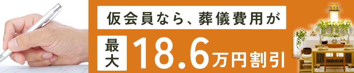 葬儀に関してお急ぎの方がご利用いただける、仮会員登録がございます。会員登録や入会金のお支払いをいただく時間がない場合は、葬儀/家族葬のご依頼前に仮会員登録を行っていただくことで会員価格でのご葬儀が可能です。